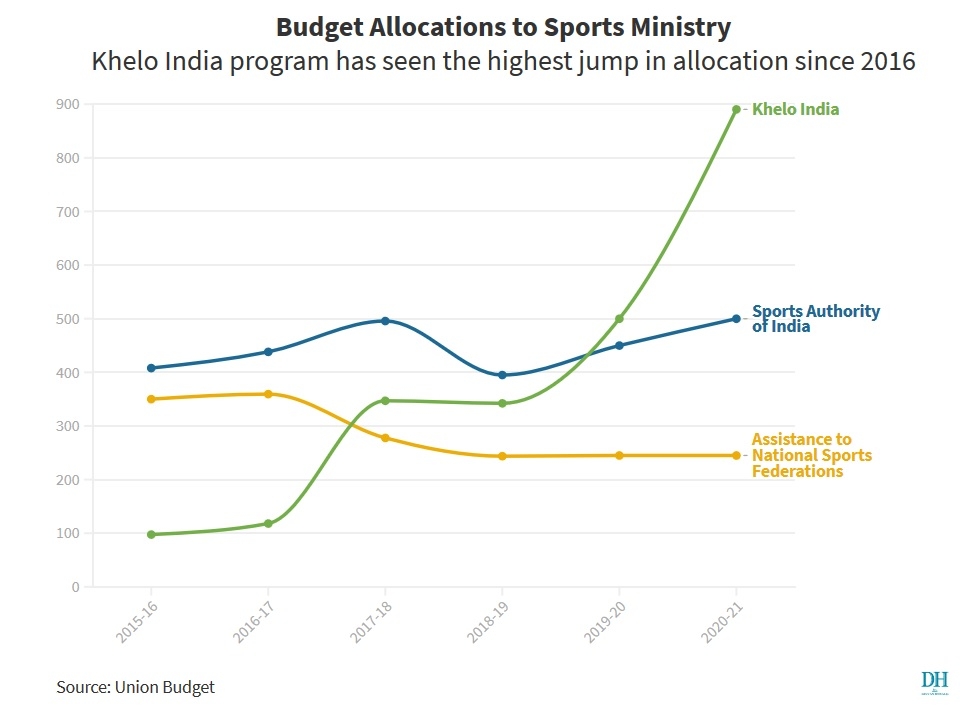 - Budget sport du Gouvernement indien cette année (2021-22) : 305 millions €, soit 8,16% de moins que l’année précédente (source) MAIS le budget a quand même bien augmenté entre 2016 et 2020 (source) notamment avec le programme national Khelo India (« play India »). Lancé en 2017-18, il vise à développer le sport « à la base » via l’identification de talents et le développement d’infrastructures et de compétitions.